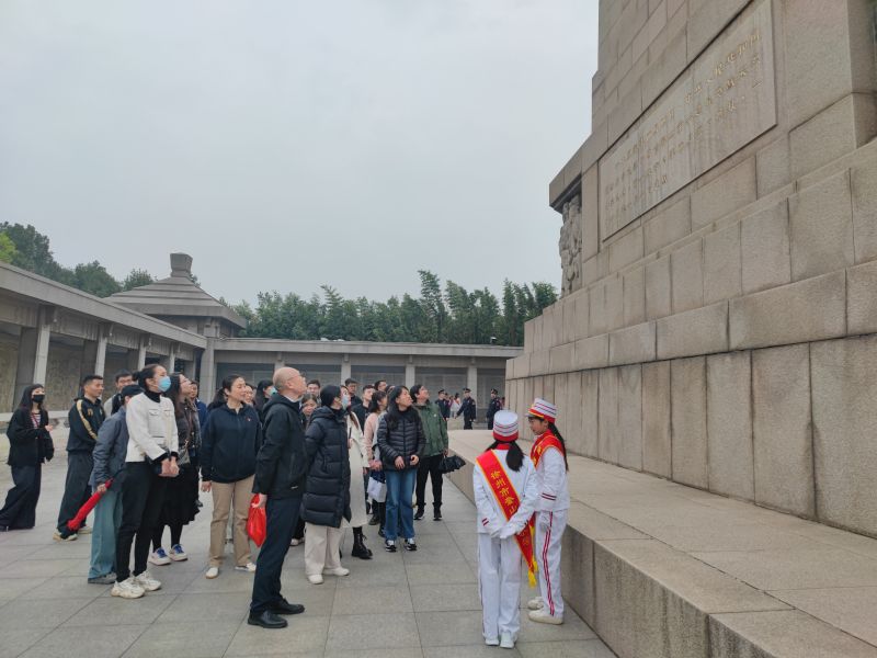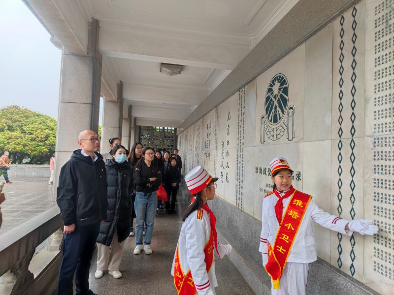 烈士陵園松柏靜哀、氣氛莊重,綿綿細(xì)雨中全體肅立,懷著沉重的心,默哀三分、敬獻(xiàn)鮮花。大家邁著緩慢的步伐繞塔一周,駐足瞻仰塔基上的場(chǎng)景浮雕,當(dāng)年淮海戰(zhàn)役壯觀(guān)的場(chǎng)面和戰(zhàn)士們視死如歸的氣勢(shì)仿佛重現(xiàn)在眼前。在淮塔小衛(wèi)士的帶領(lǐng)和講解下,觀(guān)詳烈士名錄,懷想革命先輩們?cè)⊙獖^戰(zhàn)的歷史,不無(wú)感嘆革命先烈英勇無(wú)畏的壯舉。嚴(yán)守紀(jì)律、團(tuán)結(jié)奮戰(zhàn)、不怕?tīng)奚?、勇于奉獻(xiàn)的精神深深觸動(dòng)著在場(chǎng)的每一個(gè)人。