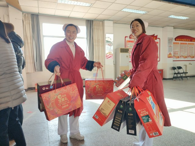 抽獎環(huán)節(jié)設(shè)置了兩種形式,既保留了傳統(tǒng)的紅包抽獎,每位職工都能抽取一個紅包,紅包內(nèi)藏有牛奶、咸鴨蛋、燕麥片等十余種實用獎品;同時引入了新穎的屏幕滾動抽獎方式,由院領(lǐng)導(dǎo)現(xiàn)場抽取三等獎到特等獎。這種創(chuàng)新與傳統(tǒng)結(jié)合的方式,讓活動充滿了驚喜和期待。
