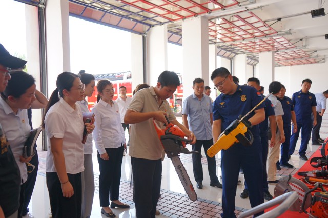 全體人員首先實地參觀了消防救援支隊特勤一站的救援車輛與裝備,消防員詳細講解了各類器材的功能與應用場景,展示了快速破拆、水槍射流等實戰(zhàn)操法,精湛技能和颯爽英姿贏得陣陣掌聲。在體驗環(huán)節(jié),青年代表體驗了消防液壓剪切鉗、消防水帶的操作使用。