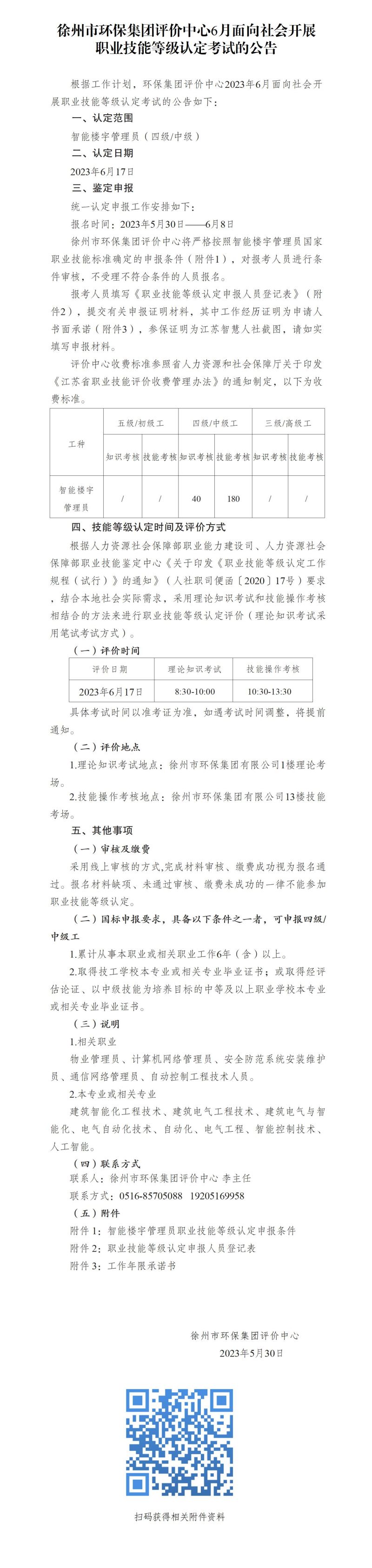 徐州市環(huán)保集團(tuán)評(píng)價(jià)中心6月面向社會(huì)開展職業(yè)技能等級(jí)認(rèn)定考試的公告