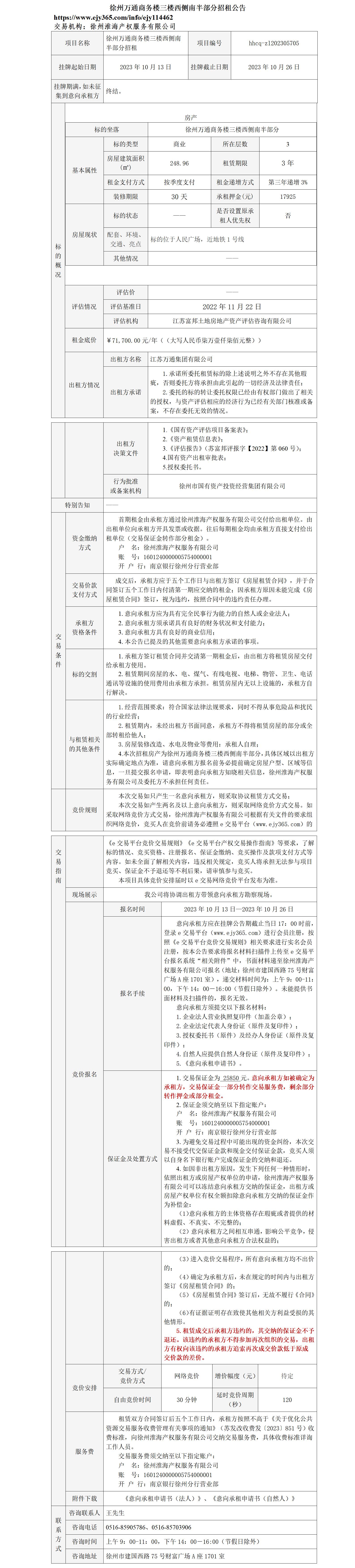 江蘇省徐州市云龍區(qū)中山南路65號(hào)輕工大樓808招租公告