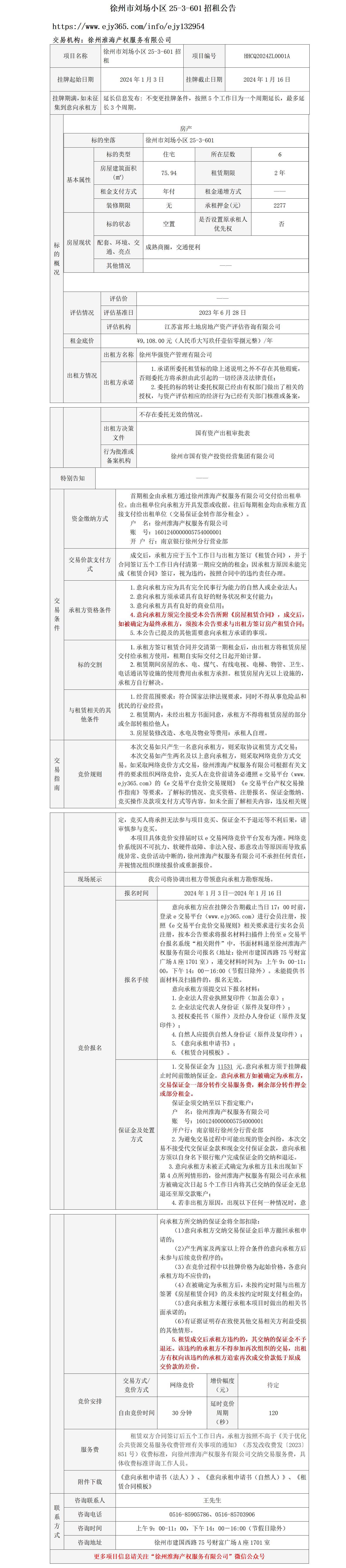 徐州市劉場小區(qū)25-3-601招租公告