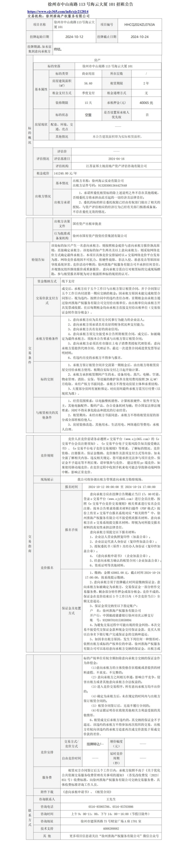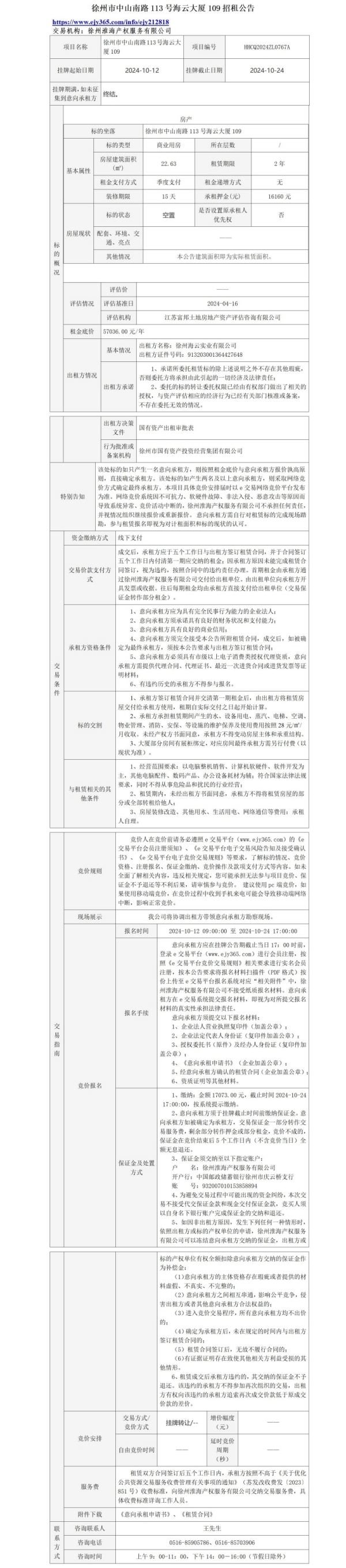 徐州市中山南路113號(hào)海云大廈1層6處房產(chǎn)招租公告