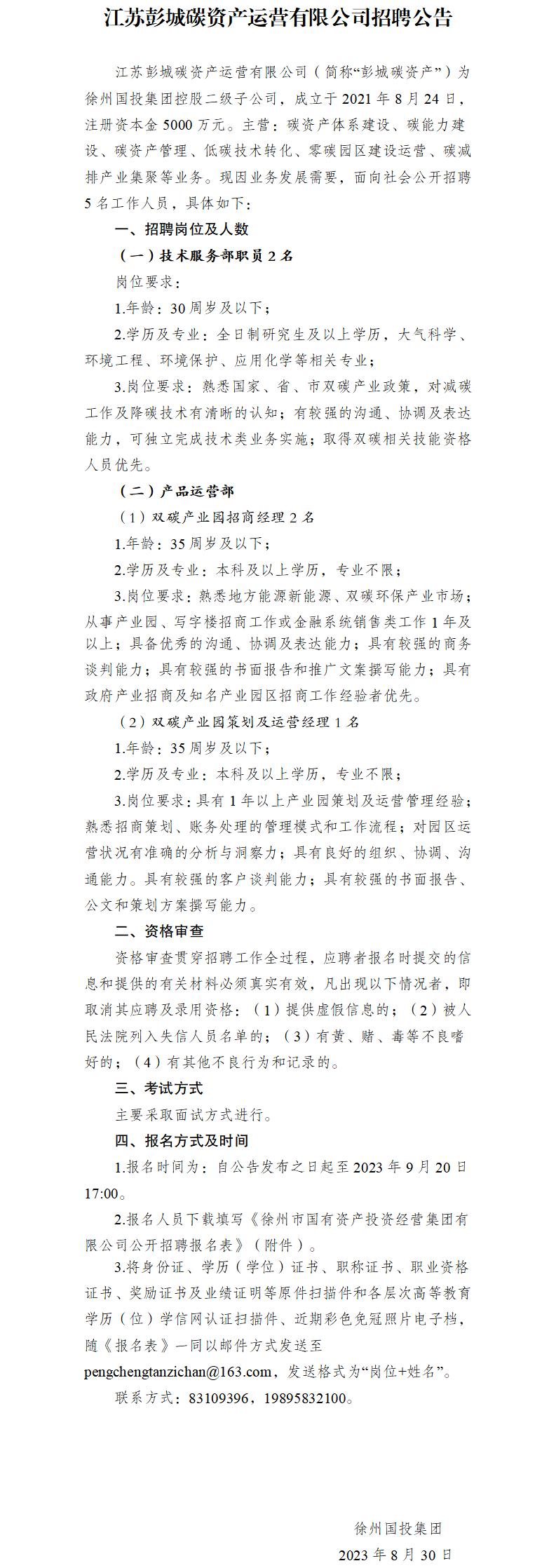 江蘇彭城碳資產(chǎn)運營有限公司招聘公告