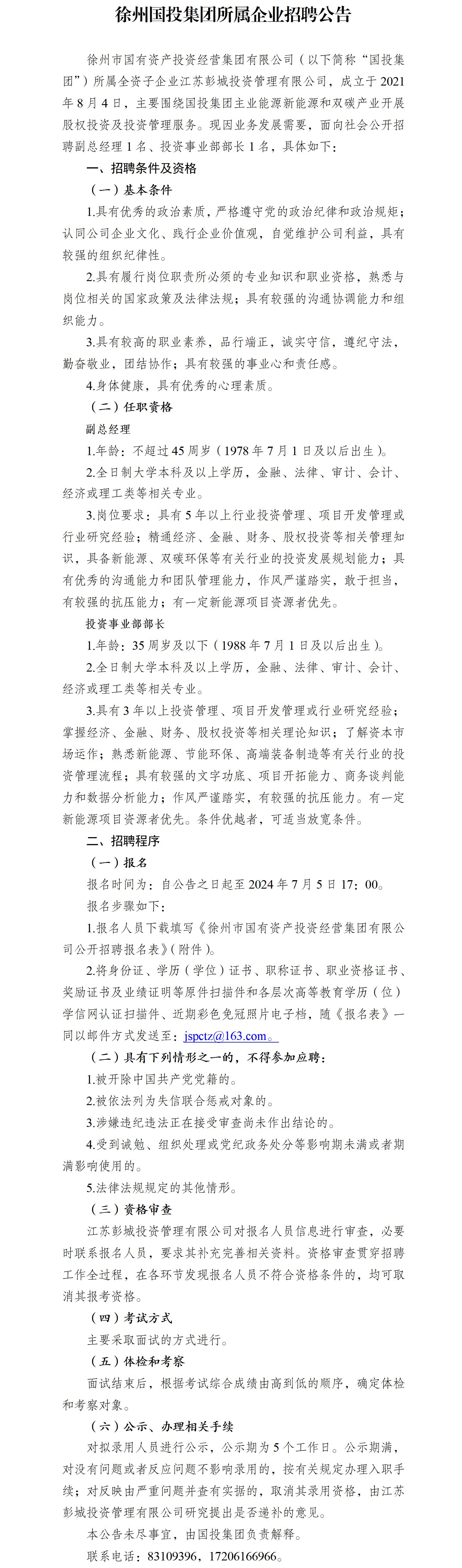 徐州國(guó)投集團(tuán)所屬企業(yè)招聘公告
