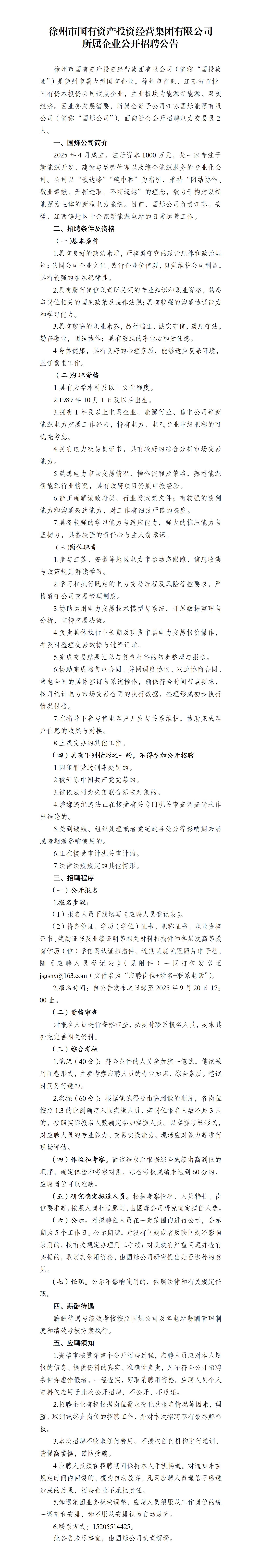 徐州市國有資產(chǎn)投資經(jīng)營集團有限公司所屬企業(yè)公開招聘公告