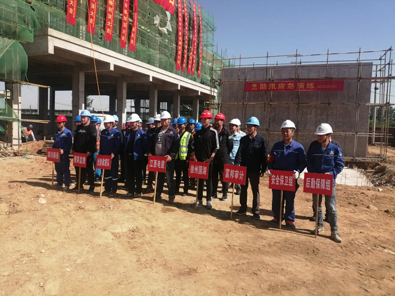 為有效應(yīng)對(duì)防汛突發(fā)事件,確保汛期施工人員安全和財(cái)產(chǎn)安全,減少汛情事故災(zāi)害造成的損失,提高防汛搶險(xiǎn)的應(yīng)急處置能力,2020年5月19日上午,徐州國(guó)湖新能源科技有限公司組織監(jiān)理、審計(jì)、總包等各參建單位開展防汛應(yīng)急演練,演練內(nèi)容以強(qiáng)降雨造成局部洪水爆發(fā),水勢(shì)猛漲,洪水淹沒升壓站施工區(qū)為背景。