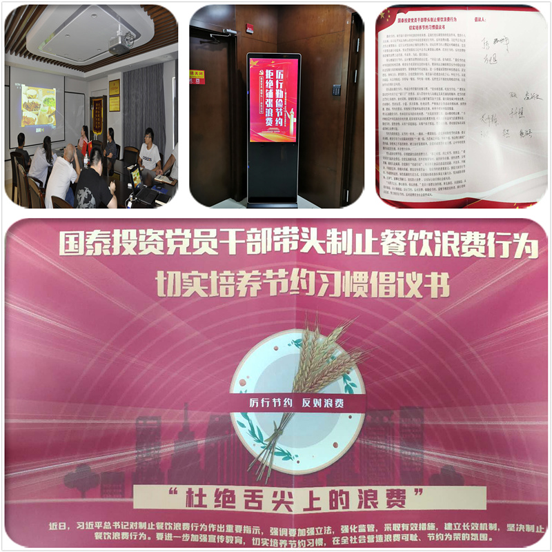 活動首先由丁秀同志向大家宣讀國泰投資黨總支和機關(guān)黨支部發(fā)起的《國泰投資黨員干部帶頭制止餐飲浪費行為切實培養(yǎng)節(jié)約習(xí)慣倡議書》,倡導(dǎo)大家尊重勞動,珍惜糧食,以黨員身份發(fā)揮模范帶頭作用,從自身做起,從節(jié)約一粒糧食做起,養(yǎng)成理性用餐,節(jié)約用餐的習(xí)慣。全體黨員還在倡議簽名簿上寫下自己的名字,做出鄭重承諾,發(fā)揮表率作用,做厲行節(jié)約、反對餐飲浪費的踐行者、宣傳者和監(jiān)督者。隨后,全體黨員集中深入學(xué)習(xí)《習(xí)總書記對制止餐飲浪費行為的重要指示精神》和集團公司黨委《關(guān)于加強精神文明教育制止餐飲浪費行為的通知》,觀看《新聞1+1》“觸目驚心”的餐飲浪費,如何治?和《焦點訪談》一粥一飯不易且重大的電視節(jié)目,大家思想上受到了教育,心靈上受到了觸動。