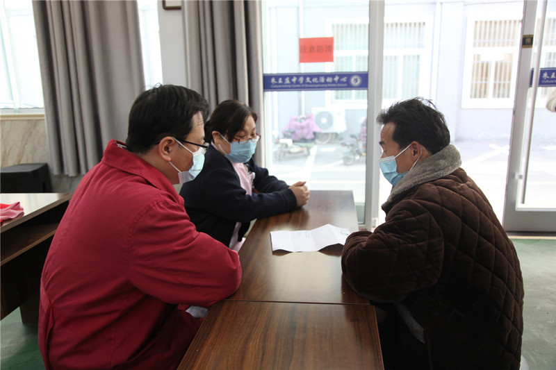 朱王莊中學(xué)校長霍久陽帶領(lǐng)志愿者們來到會(huì)議室,四個(gè)低保家庭的學(xué)生及家長已經(jīng)在這里等候,志愿者們將帶來的物品交到每個(gè)家庭手中,并與孩子及家長進(jìn)行了深入交流談心,為他們解答生活、學(xué)習(xí)過程中的困惑,同時(shí),醫(yī)務(wù)人員為他們進(jìn)行了健康體檢和健康教育,對生活方式、飲食選擇等進(jìn)行指導(dǎo)。