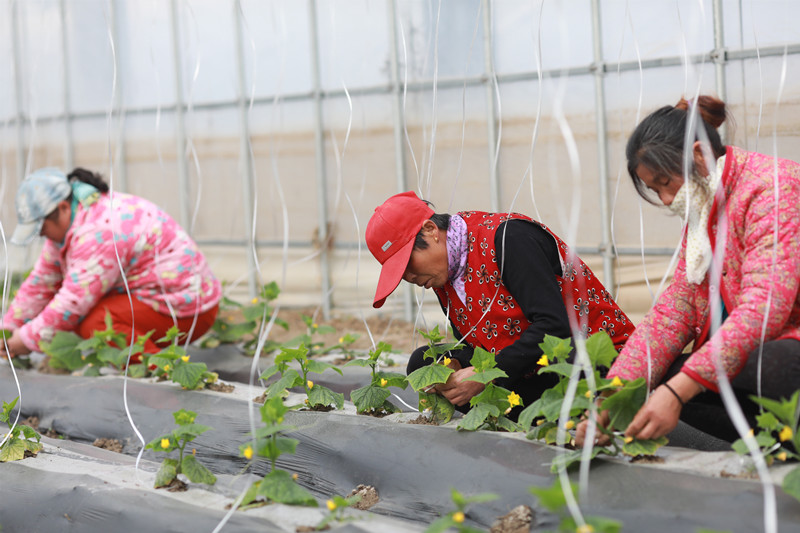 國投環(huán)能公司所屬宿州協(xié)鑫“農(nóng)光互補(bǔ)”項(xiàng)目建設(shè)前,周邊青壯年以外出務(wù)工為主,年紀(jì)稍大的則在家種植小麥、玉米,每畝年收入1500元。項(xiàng)目建成后,該項(xiàng)目一方面以支付土地租金的形式讓村民直接受益,另一方面通過返租土地、勞務(wù)用工的方式為當(dāng)?shù)卮迕裉峁┝舜罅烤蜆I(yè)機(jī)會(huì),吸引了一部分村民回家就業(yè),并帶動(dòng)了周邊100多戶村民發(fā)展立體化農(nóng)業(yè)。光伏土地與大棚優(yōu)先返租給當(dāng)?shù)赜袑?shí)力、有經(jīng)驗(yàn)的種植大戶承包經(jīng)營,并鼓勵(lì)他們招聘人員時(shí)優(yōu)先選擇當(dāng)?shù)刎毨Т迕瘛?