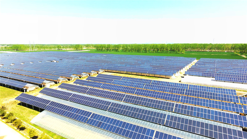 國投環(huán)能公司所屬宿州協(xié)鑫“農(nóng)光互補(bǔ)”項(xiàng)目位于安徽省宿州市埇橋區(qū)灰古鎮(zhèn)付湖村,總占地面積約1500畝,總投資10億余元,年均發(fā)電量約為4800萬千瓦時(shí),其中光伏大棚占地面積602畝、油用牡丹占地面積200畝、智能溫室展示區(qū)占地面積80畝。每年初春,在光伏電站內(nèi),隨處可見的是大批村民們在光伏大棚內(nèi)施肥旋耕,緊張忙碌著。