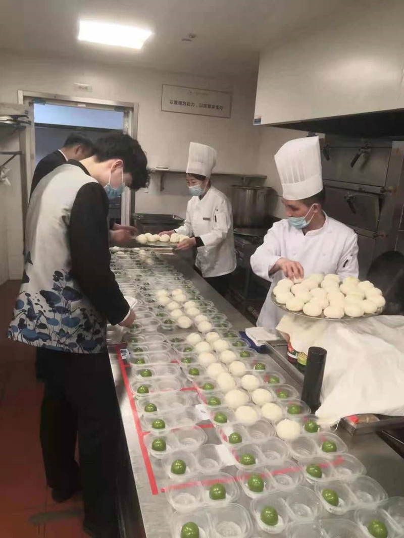 活動(dòng)當(dāng)日,沐浴著春日暖陽(yáng),銷售部、餐飲部一行6人來(lái)到了酒店附近的錦都匯嘉園等社區(qū),將廚房自制的肉松餡、豆沙餡青團(tuán)及筍丁包等多種點(diǎn)心發(fā)放給居民,前來(lái)的居民絡(luò)繹不絕。