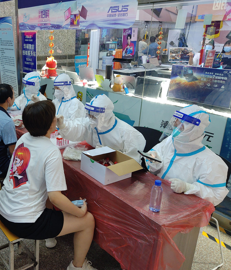 為貫徹落實徐國投疫防辦〔2021〕1號關(guān)于加強常態(tài)化疫情防控工作的通知,強化新冠疫情防控工作,筑牢海云大廈業(yè)戶的健康“防護墻”,海云公司第一時間與云龍區(qū)商務(wù)局及云龍區(qū)衛(wèi)生防疫站進(jìn)行聯(lián)系,8月3日,在海云大廈現(xiàn)場對所有業(yè)戶及從業(yè)人員約700人進(jìn)行了全員免費核酸檢測。