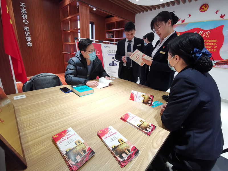 在公司內(nèi)部,采購(gòu)了《民法典》《傳染病防疫法》《中國(guó)合同大全》等專業(yè)法律書籍百余本,在派發(fā)書籍的同時(shí)進(jìn)行現(xiàn)場(chǎng)講解,激發(fā)員工學(xué)習(xí)法律知識(shí)的熱情;通過(guò)組建普法小分隊(duì)、開展“普法進(jìn)食堂”活動(dòng)、輪番播放《今日說(shuō)法》《法制講堂》等法制節(jié)目、在餐桌上擺放普法臺(tái)卡等形式,將食堂“升級(jí)改造”為“普法講堂”,以案例和可視化的形式將法律知識(shí)生動(dòng)展示,為員工提供法治學(xué)習(xí)新體驗(yàn),更加直觀地普及法律法規(guī)知識(shí);還設(shè)立法律咨詢處,通過(guò)發(fā)放三折頁(yè)的形式,現(xiàn)場(chǎng)答疑解惑,接受咨詢,大力開展法律知識(shí)宣傳,進(jìn)一步提高廣大干部職工的法治意識(shí)。