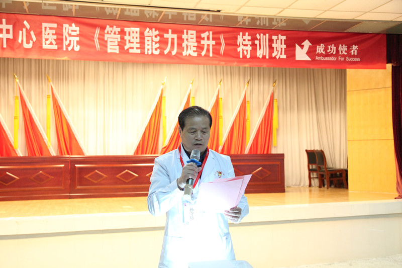 院黨委書記孫守訪在開班儀式致辭中指出,舉辦這次管理能力提升特訓班,旨在我們學習先進的管理經驗,解放思想、轉變觀念,提高大家的綜合素養(yǎng),打造一支政治過硬、立場堅定、無私奉獻的干部隊伍,保障醫(yī)院改革發(fā)展。要求參培人員無論是從醫(yī)院的發(fā)展、從科室的管理方面,還是從個人的提升方面,都要珍惜此次培訓機會,切實達到增強本領、提高素養(yǎng)、保障發(fā)展的目的。