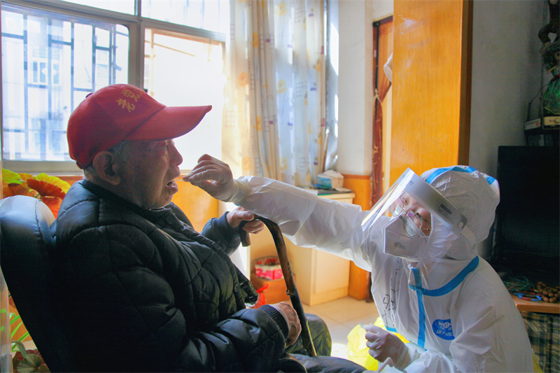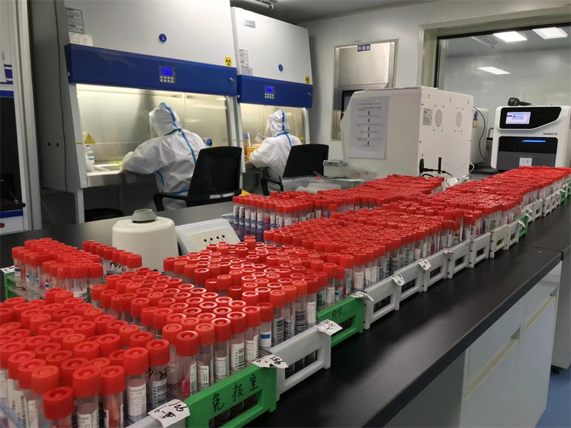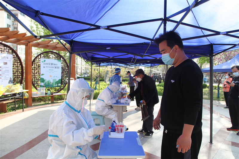 盡銳出戰(zhàn),黨群勠力同心。9日早上5點(diǎn),天色朦朧中,黨員帶領(lǐng)所有工作人員已到達(dá)指定采樣點(diǎn),開始做采樣前的準(zhǔn)備工作,6點(diǎn)鐘采樣準(zhǔn)時(shí)開始。四月的早上與中午溫差大,采樣人員穿著單薄,早上冷風(fēng)襲來(lái),有的人皮膚上起了蕁麻疹,不敢用手去撓;中午在太陽(yáng)的炙烤下,防護(hù)服下的衣衫早已濕透,只能忍著。即使再辛苦,她們沒有一聲怨言,有的是戰(zhàn)勝病毒的決心。黨委班子成員下沉一線,奔波于各采樣點(diǎn)進(jìn)行巡查、指導(dǎo),慰問大家。黨員同志在采樣中充分發(fā)揮模范帶頭作用,以實(shí)際行動(dòng)帶領(lǐng)大家奮力作戰(zhàn)。入戶人員穿著防護(hù)服深入社區(qū),一上午要爬幾十層樓,為行動(dòng)不便的老人采樣。后方陣營(yíng)的檢驗(yàn)科在多人被抽調(diào)外出支援的情況下,面對(duì)堆積如山的標(biāo)本,克服困難,換人不停機(jī),保質(zhì)保量完成標(biāo)本檢測(cè)任務(wù)。