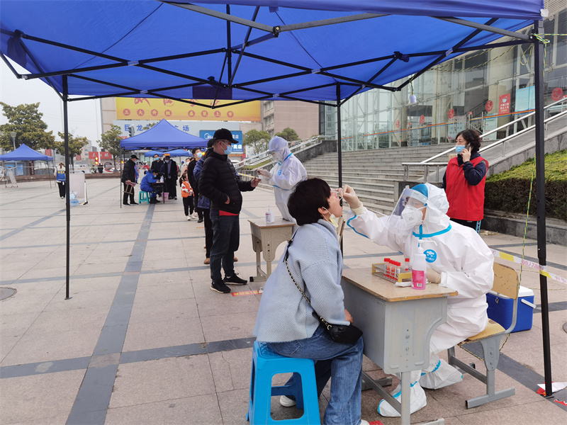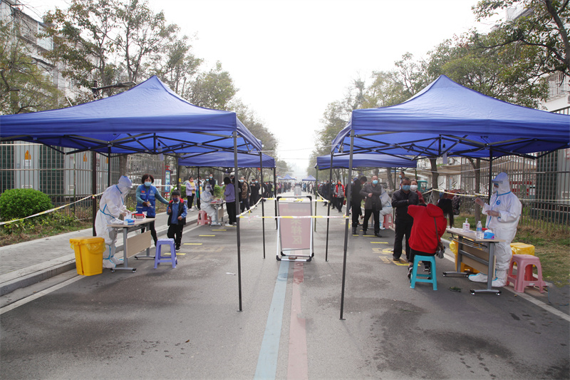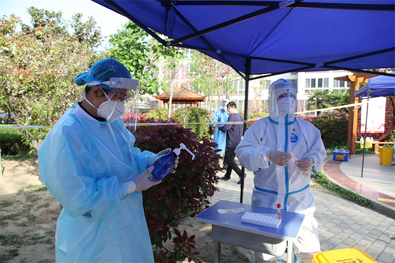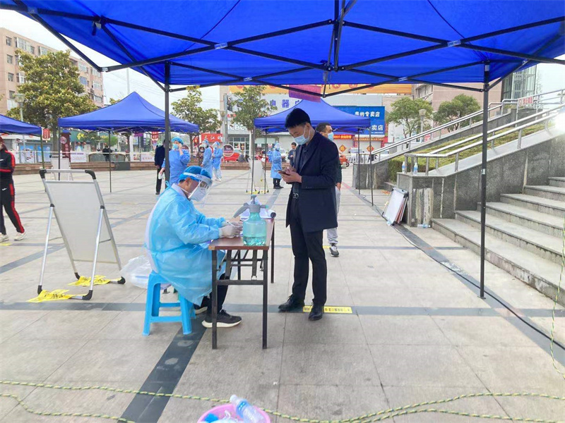副院長(zhǎng)張文權(quán)下班后沒(méi)有回家,來(lái)到所負(fù)責(zé)的采樣點(diǎn),帶頭穿上防護(hù)服當(dāng)起了志愿者,為采樣居民進(jìn)行信息登記。