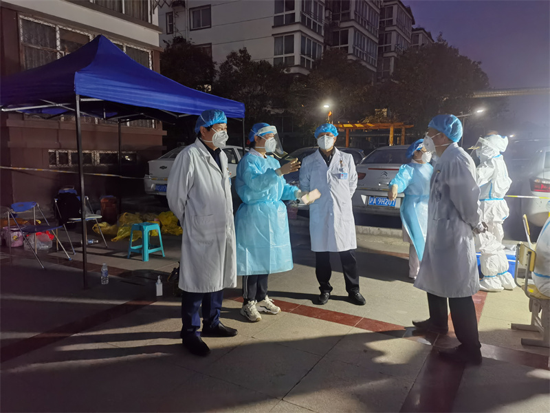 采樣人員匆匆吃了點(diǎn)午飯后,11點(diǎn)半便來(lái)到了各自的采樣點(diǎn),做好了奮戰(zhàn)到深夜的準(zhǔn)備。中午,院黨委書(shū)記、院長(zhǎng)張心海及班子成員先后來(lái)到各個(gè)采樣點(diǎn)進(jìn)行督導(dǎo),現(xiàn)場(chǎng)解決問(wèn)題。晚上7點(diǎn)多,院領(lǐng)導(dǎo)又一次來(lái)到各個(gè)采樣點(diǎn)進(jìn)行慰問(wèn)。