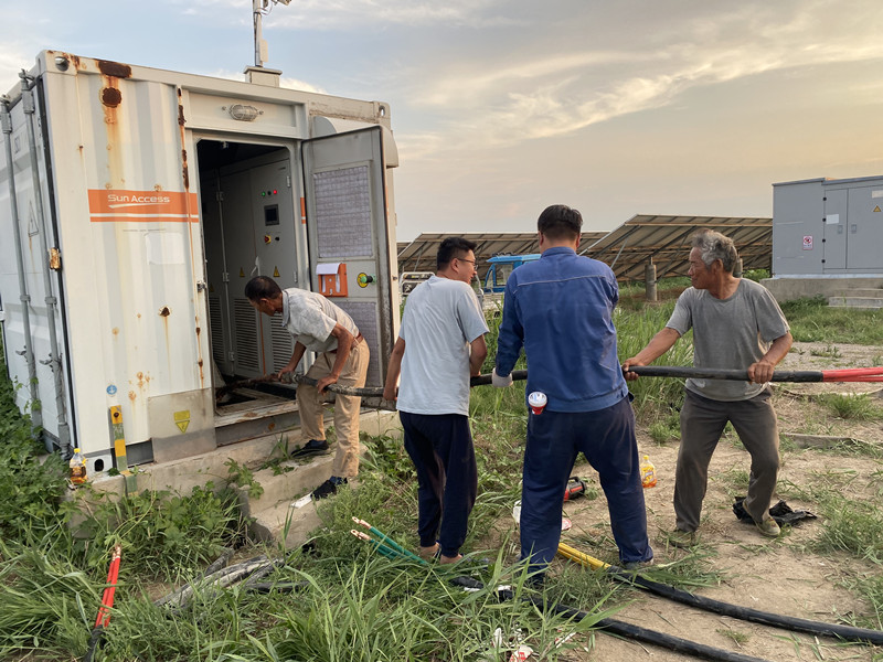 6月26日上午8時,沛縣國源光伏電力有限公司現(xiàn)場運維人員一早便頂著高溫天氣在現(xiàn)場進行檢查,突然發(fā)現(xiàn)監(jiān)控后臺有一臺逆變器由于漏電保護響起了報警聲,現(xiàn)場的運維人員立即前去現(xiàn)場進行檢測,初步判定為逆變器與變壓器中間段電纜損壞。運維人員立即向領導匯報并著手準備電纜的更換工作。由于更換電纜需向供電公司申請生產(chǎn)區(qū)線路高壓側停電,同時為了減少白天的發(fā)電損失,運維人員于當天下午6點半申請高壓側停電并進行電纜更換工作,經(jīng)過連續(xù)3個小時緊急施工,于當晚9點半就完成了電纜的更換,又過了10分鐘送電完成,恢復生產(chǎn)正常。