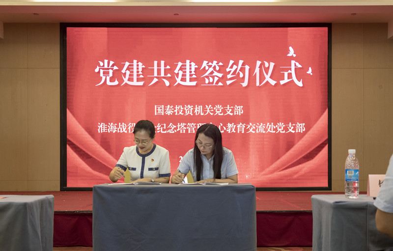 活動最后,淮塔管理中心教育交流處黨支部與國泰投資機關(guān)黨支部簽署《黨建共建協(xié)議書》。淮塔管理中心與國泰投資將充分利用各自黨建資源,推動雙方黨建共建共強,為共同講好中國故事、傳承紅色基因、培育愛國精神,貢獻力量。