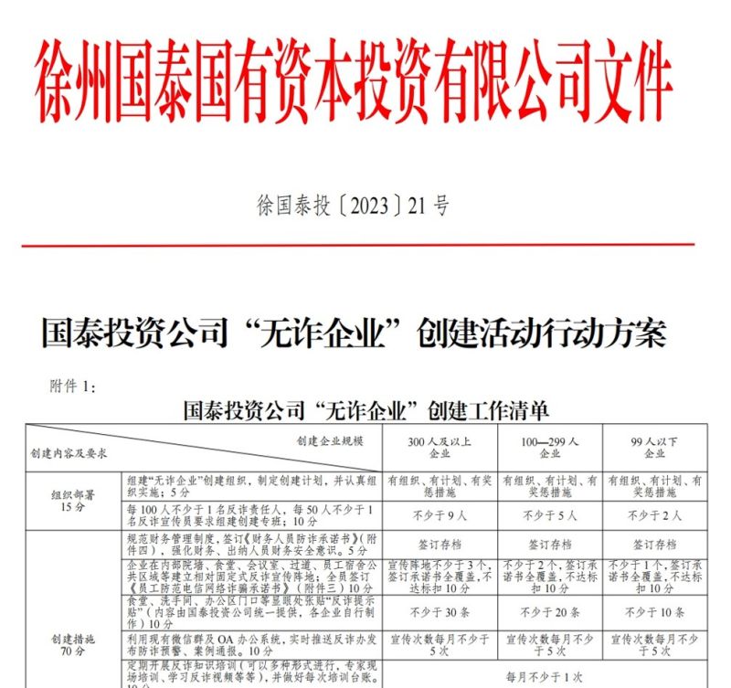 為順利推進(jìn)“無詐企業(yè)”創(chuàng)建工作,國泰投資公司成立“無詐企業(yè)”創(chuàng)建工作領(lǐng)導(dǎo)小組,制定《“無詐企業(yè)”創(chuàng)建工作清單》,強(qiáng)調(diào)要加強(qiáng)防范電信網(wǎng)絡(luò)詐騙學(xué)習(xí)、加強(qiáng)內(nèi)外部反詐宣傳以及運(yùn)用科學(xué)技術(shù)加強(qiáng)保障等方面的工作,樹立保護(hù)職工“錢袋子”就是促進(jìn)企業(yè)安全生產(chǎn)、健康發(fā)展理念,共同努力打造“無詐企業(yè)”良好形象。