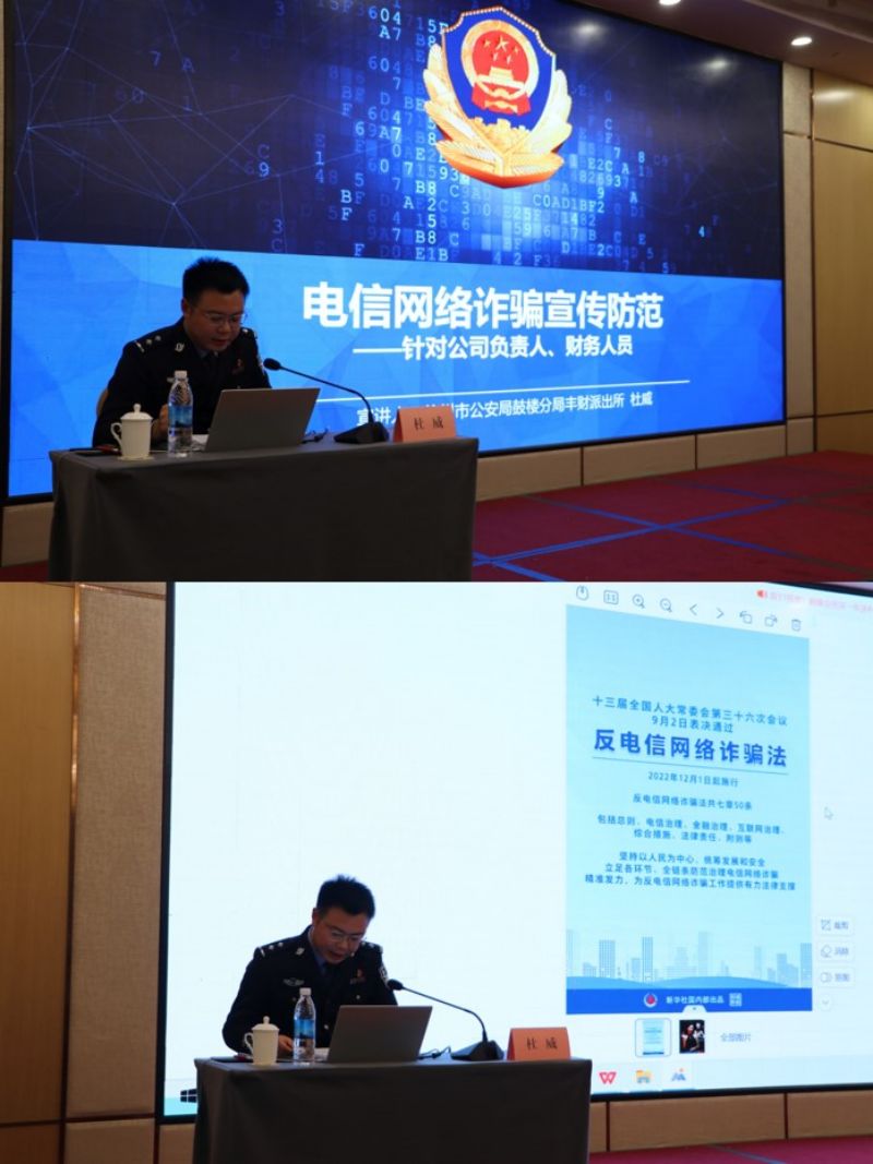 國泰投資公司以“無詐企業(yè)”創(chuàng)建活動(dòng)為牽引,邀請(qǐng)徐州市公安局鼓樓分局豐財(cái)派出所杜所長擔(dān)任主講人,開展了一期“電信網(wǎng)絡(luò)詐騙防范宣傳”專題培訓(xùn)。杜所長以近期頻發(fā)的電信網(wǎng)絡(luò)詐騙真實(shí)案件為例,為員工深入剖析電信詐騙的基本類型、話術(shù)特點(diǎn)、基本流程以及防范措施,用“以案釋法”的方式講解了冒充客服詐騙、AI科技詐騙、刷單詐騙、公檢法詐騙等常見手段,從不同角度為員工講授防騙知識(shí),同時(shí)也向員工普及了《網(wǎng)絡(luò)安全法》《反電信詐騙法》《個(gè)人信息保護(hù)法》等相關(guān)的法律法規(guī)知識(shí)。