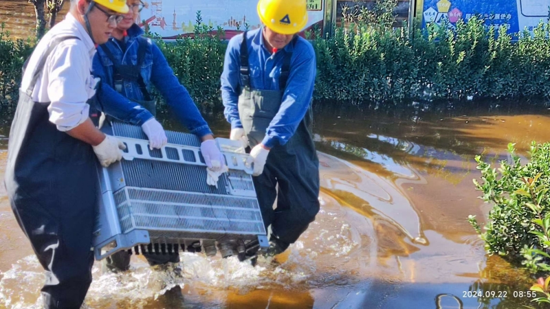 9月19日02時(shí)57分,暴雨黃色預(yù)警信號(hào)解除,面對(duì)一片狼藉的現(xiàn)場,全體員工沒有絲毫懈怠,迅速從抗洪搶險(xiǎn)模式轉(zhuǎn)入查驗(yàn)設(shè)備運(yùn)行狀況與恢復(fù)廠容廠貌階段?!爸煊?,趕緊采購下水褲、烘干機(jī)、消毒液。”劉忠保為防止雨后次生災(zāi)害、加快設(shè)備檢查與恢復(fù)進(jìn)程,迅速做出工作安排,對(duì)受損物資進(jìn)行全面、精準(zhǔn)地統(tǒng)計(jì),詳細(xì)記錄受損程度和原因,向保險(xiǎn)公司提交詳盡的理賠材料。經(jīng)統(tǒng)計(jì),除3臺(tái)逆變器、1臺(tái)柜式空調(diào)、1扇電動(dòng)大門等設(shè)備受損外,光伏區(qū)組件、支架、電纜、箱變、逆變器、匯流箱等重要發(fā)電設(shè)備均未受損。