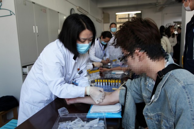 上午7點(diǎn)50分,在學(xué)校老師的帶領(lǐng)下,學(xué)生們?cè)缫呀?jīng)整齊列隊(duì)等候在體檢中心門口。為確保體檢工作順利進(jìn)行,醫(yī)務(wù)人員首先為他們?cè)敿?xì)講解了各項(xiàng)體檢的注意事項(xiàng)。8點(diǎn)鐘,學(xué)生們列隊(duì)有序進(jìn)入體檢現(xiàn)場(chǎng)。體檢現(xiàn)場(chǎng)設(shè)置了內(nèi)科、外科、五官科、抽血等檢查點(diǎn),工作人員均提前就位,以飽滿的熱情迎接同學(xué)們的到來(lái)。在醫(yī)務(wù)人員及老師的協(xié)同引導(dǎo)下,同學(xué)們依次接受心肺聽診、血壓測(cè)量、視力檢測(cè)、聽力篩查、血液采集、胸部 X 線透視等各項(xiàng)檢查。整個(gè)體檢過程有條不紊,現(xiàn)場(chǎng)秩序井然,體檢工作人員態(tài)度和藹、認(rèn)真細(xì)致地為學(xué)生們做著每一項(xiàng)檢查,同時(shí)全方位做好學(xué)生引導(dǎo)、分流工作,確保體檢高效、安全、順暢進(jìn)行。
