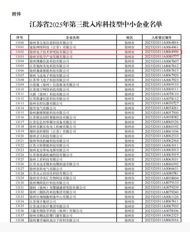 近日,電子研究院憑借深厚的研發(fā)積淀、突出的技術(shù)創(chuàng)新能力及規(guī)范的運(yùn)營管理,以滿分100分的優(yōu)異成績,全指標(biāo)達(dá)標(biāo)、全維度領(lǐng)先,順利通過科技型中小企業(yè)認(rèn)定,成功納入全國科技型中小企業(yè)信息庫,成為區(qū)域科技創(chuàng)新領(lǐng)域的標(biāo)桿企業(yè)。